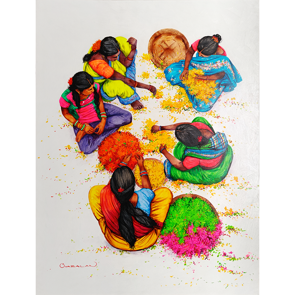 Sivabalan's art is a vibrant celebration of life, emotion, and the beauty surrounding us. With a distinctive style characterized by rich textures, bold colors, and thoughtful compositions, his paintings resonate with a universal language of creativity and inspiration. Each piece reflects his astute observation of nature, culture, and the human experience, capturing moments filled with tranquility, passion, and wonder.